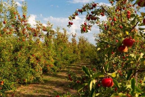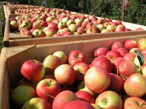 Apfelbäume. Darüber hinaus bauen wir Birnen, Pflaumen, Pfirsiche und