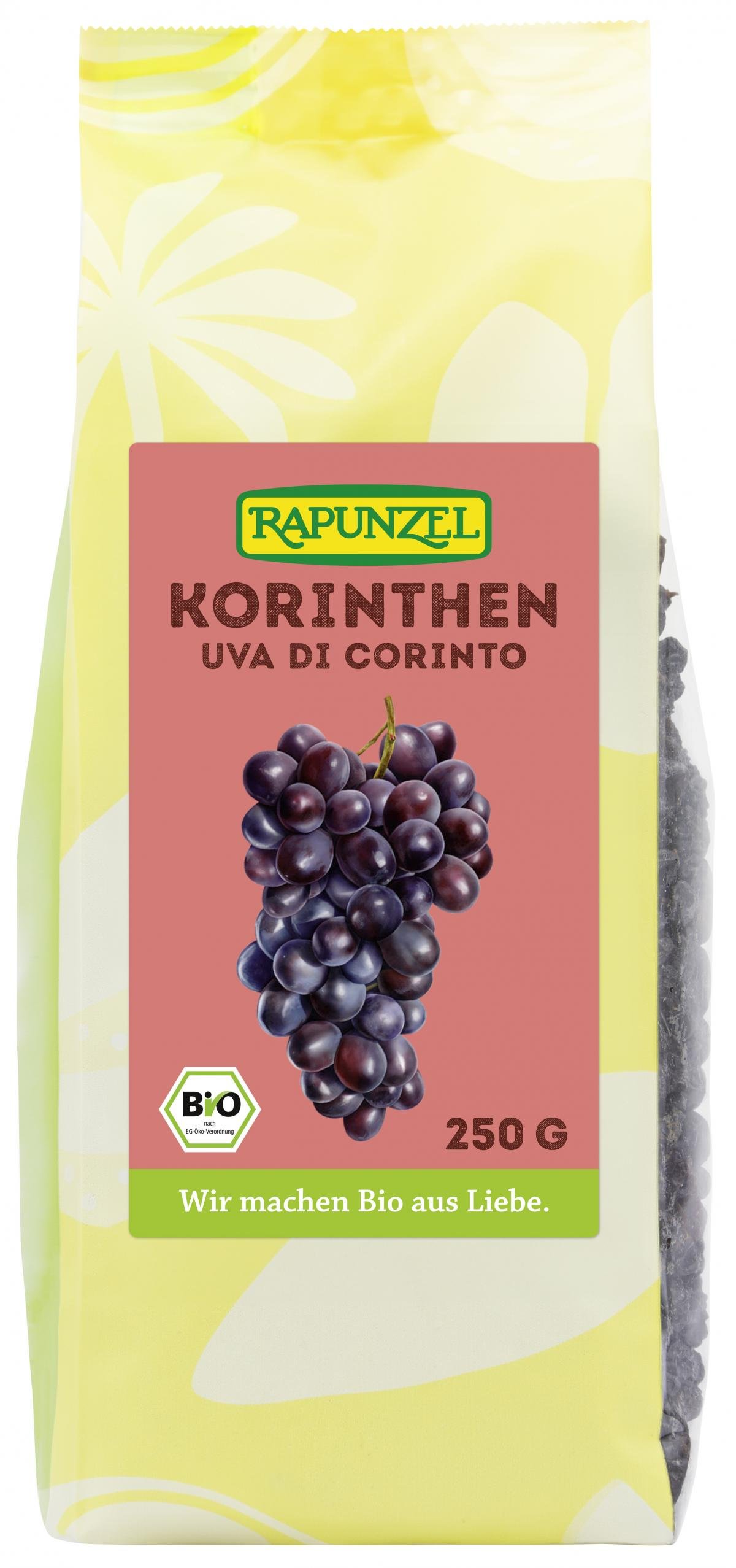 Korinthen sind kleine, blaue-violette, süß-aromatische Trauben. Sie werden an der Sonne getrocknet und bieten einen süß-aromatischen, fruchtigen und leicht herben Genuss. Ihr Name stammt von der griechischen Hafenstadt Korinth, in deren Gegend sie bevorzugt angebaut werden.