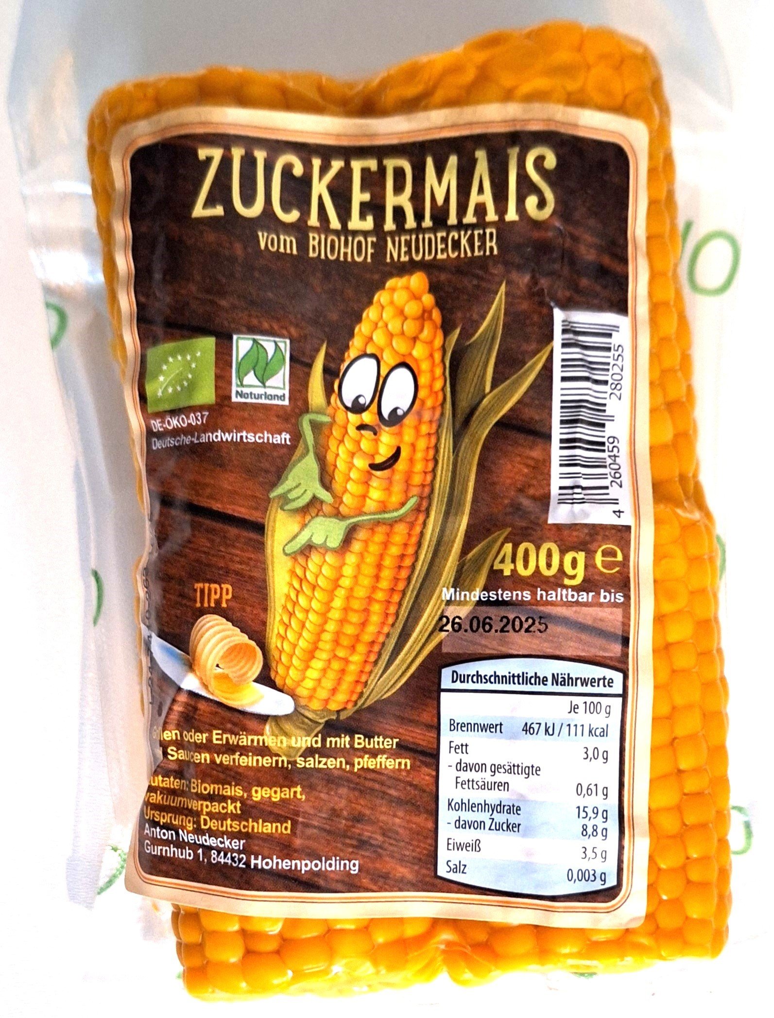 Zuckermais vak.