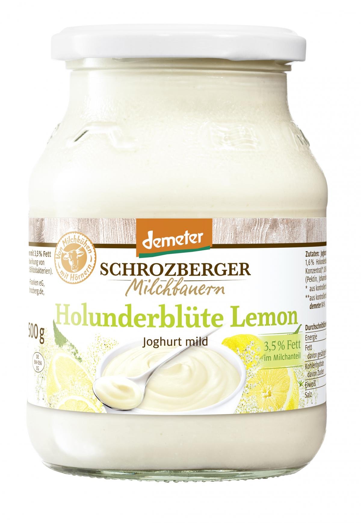 JOGHURT mild **, Rübenzucker**, 3% Holunderblütenauszug**, (Wasser, Zitronensaft**, Holunderblüten**), 3% Zitrone**, Verdickungsmittel Johannisbrotkernmehl*