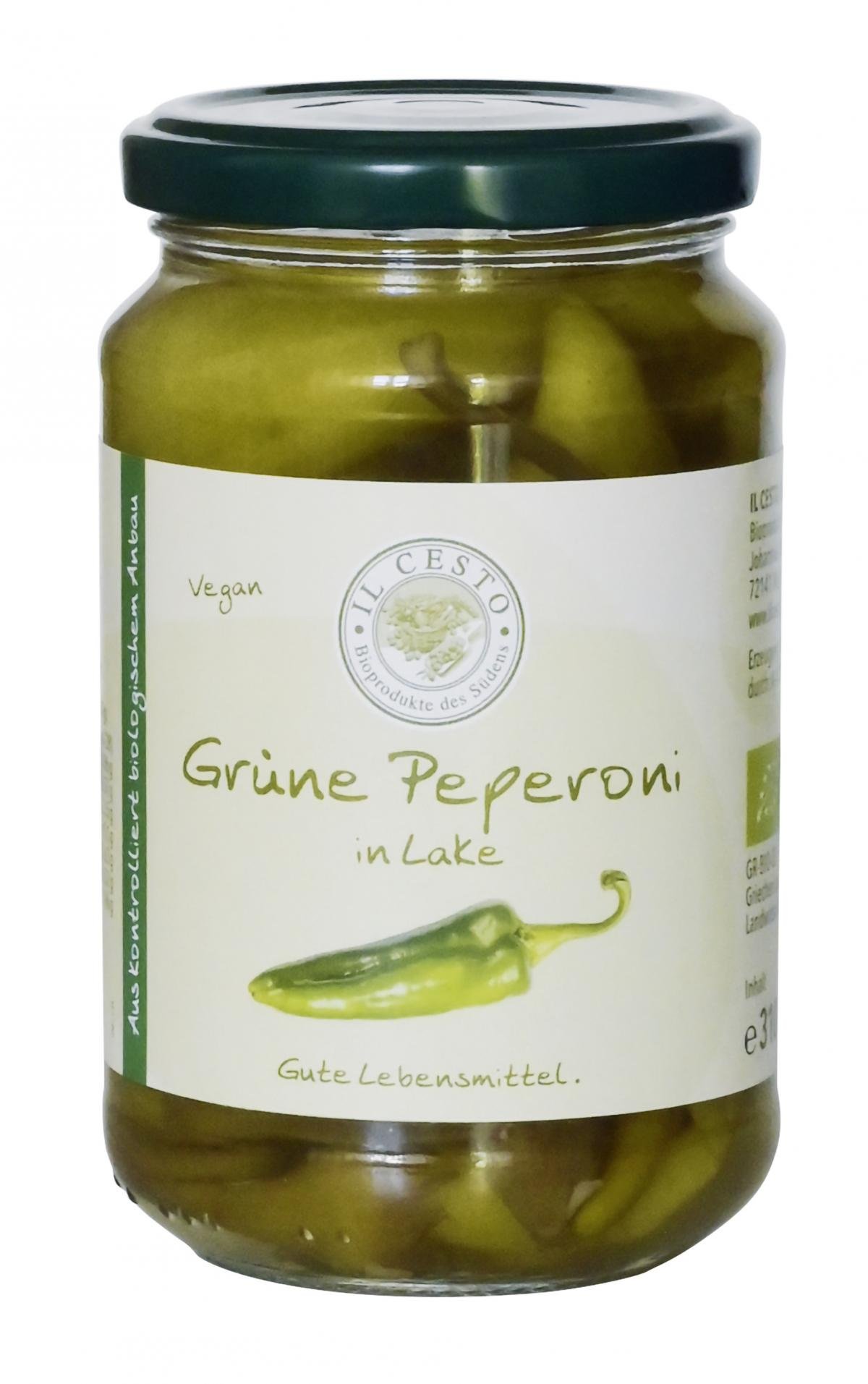 Grüne Peperoni*, Wasser, Meersalz, Zitronensaft*