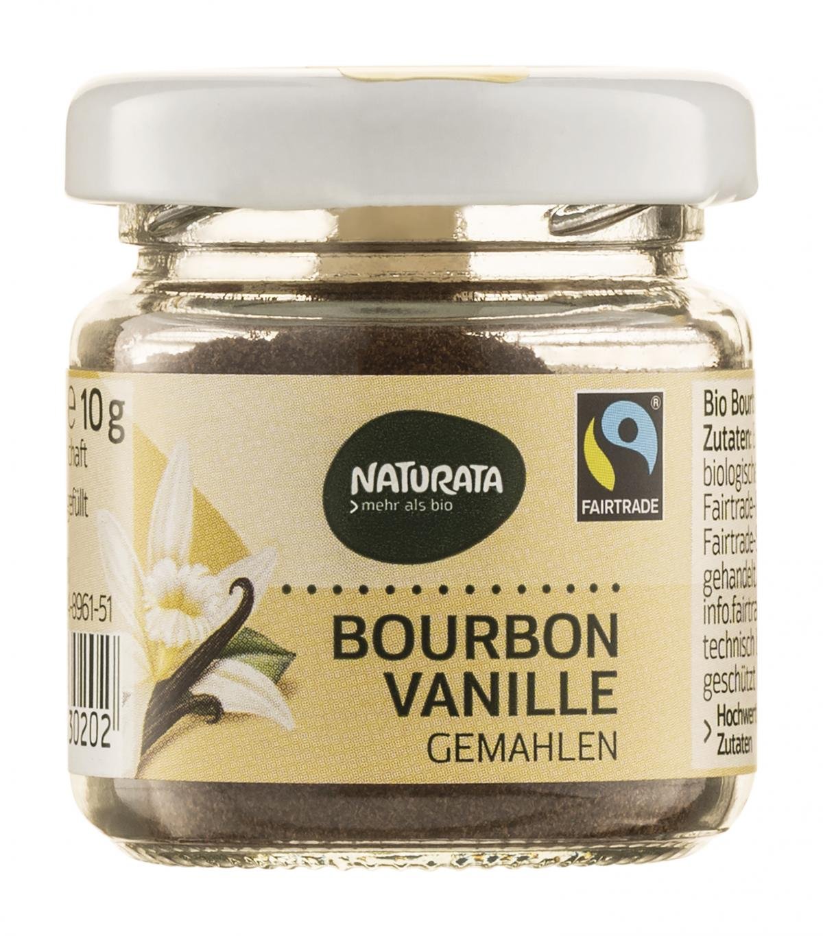 Naturata gemahlene Vanille besteht aus fein vermahlenen Bio-Bourbon-Vanilleschoten und wird fair gehandelt. Für 10 g Bourbon-Vanillepulver werden 3-4 Schoten verwendet.