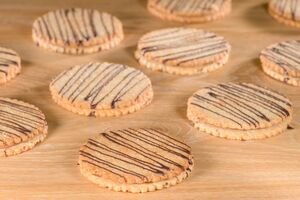 DINKEL 630, Margarine (ungehärtetes Palmfett, Sonnenblumenöl, Wasser, Salz, Zitronensaaftkonzentrat), Rübenzucker, Schokolade (Kakaomasse, Rohrohrzucker, Kakaobutter), HASELNÜSSE, HAFER, Wasser, Nougat (Rohrohrzucker, HASELNÜSSE, Kakaobutter, Kakaomasse), Pflanzenfett,m Weinsteinbackpulver (Monokaliumtartrat, Backtriebmittel: Natriumhydrogencarbonat, Maisstärke), Kakaobutter, Meersalz, Vanille