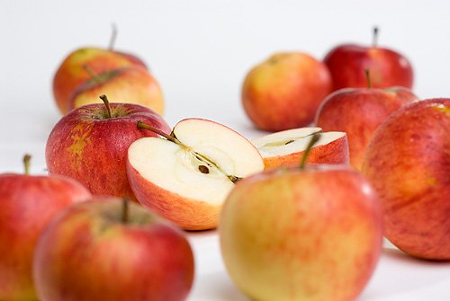 Festes, knackiges Fleisch, feinzellig, sehr saftig, fein gewürzt, süß-säuerlich, sehr guter Geschmack, sehr guter Vitamin C-Träger