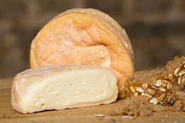 Rötlicher Demeter-Käse aus pasteurisierter Milch. Zutaten: pasteurisierte MILCH, MILCHsäurebakterien, Kälberlab, Steinsalz