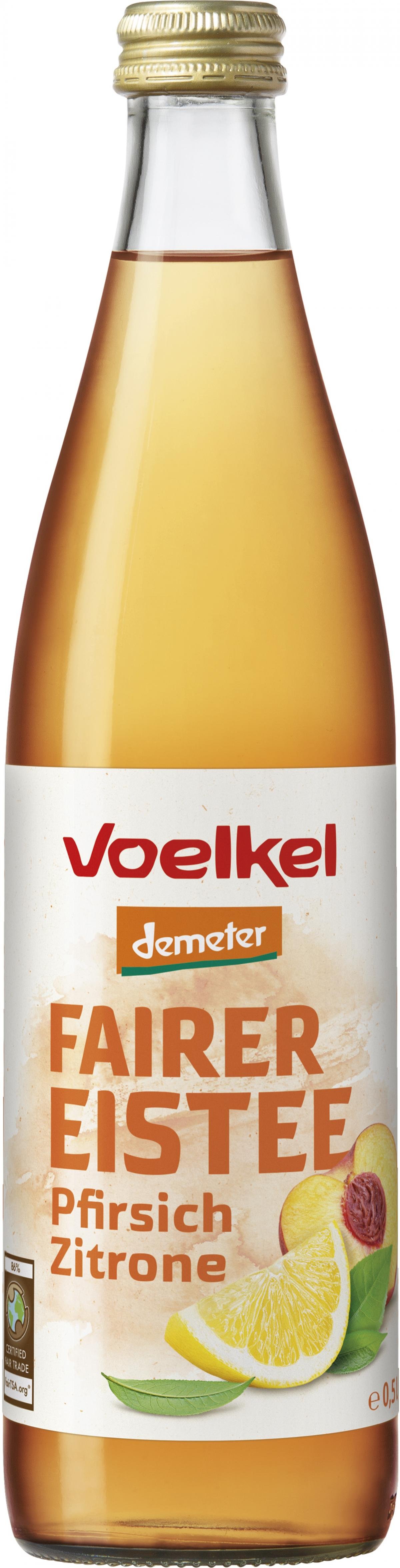 Der Faire Eistee Pfirsich Zitrone kombiniert auf erfrischende Weise aromatischen Schwarztee und Hisbiskus mit fruchtigem Pfirsichmark und Direktsaft aus sonnenverwöhnten Zitronen. Ein Genuss für Mensch und Natur, dank biologisch-dynamisch angebauter Zutaten aus fairem Handel.