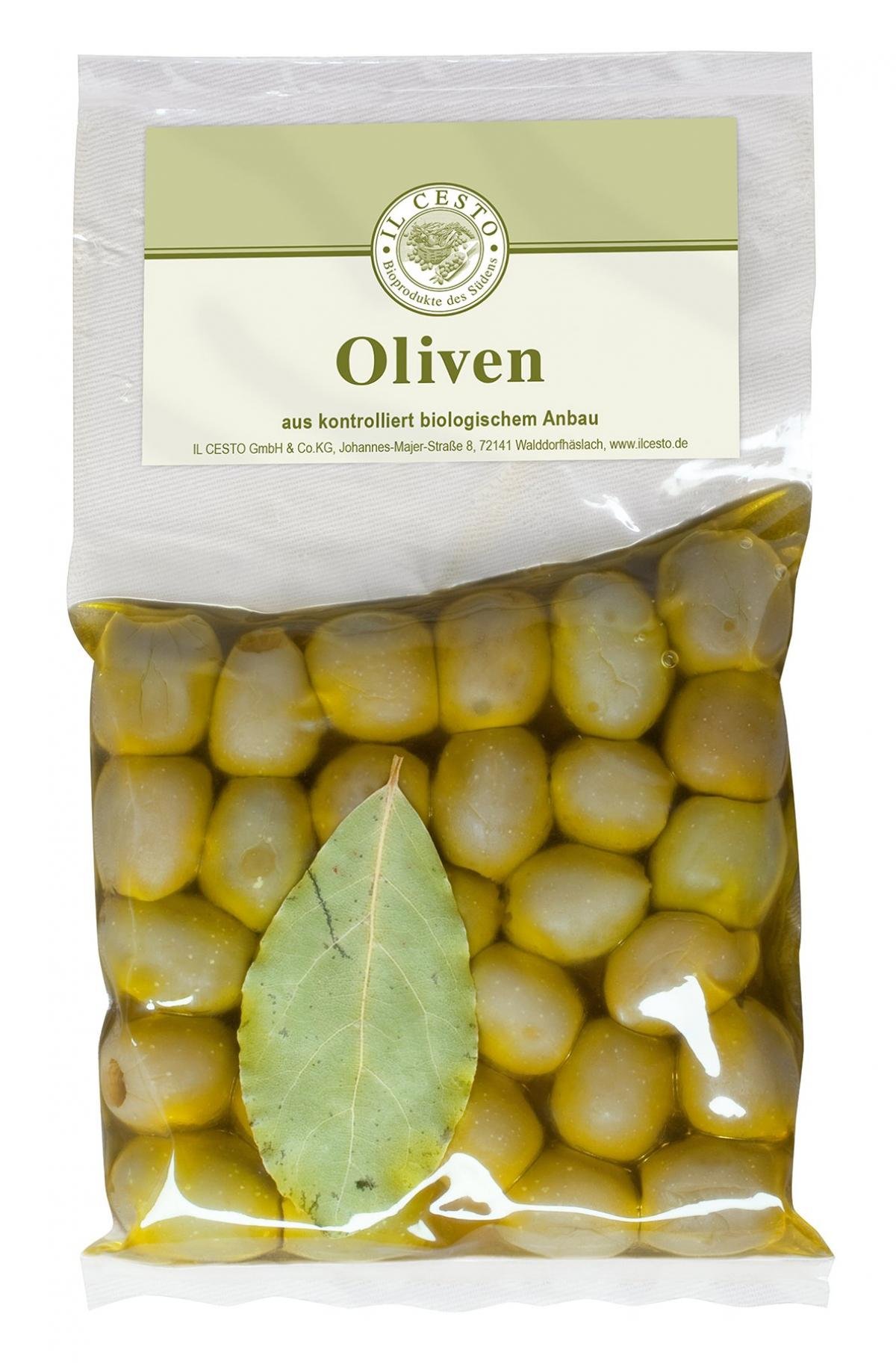 Oliven grün* (85,7%) (Zitrone*, Meersalz), Rapsöl* (14%) (kaltgepresst), Lorbeer*